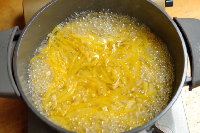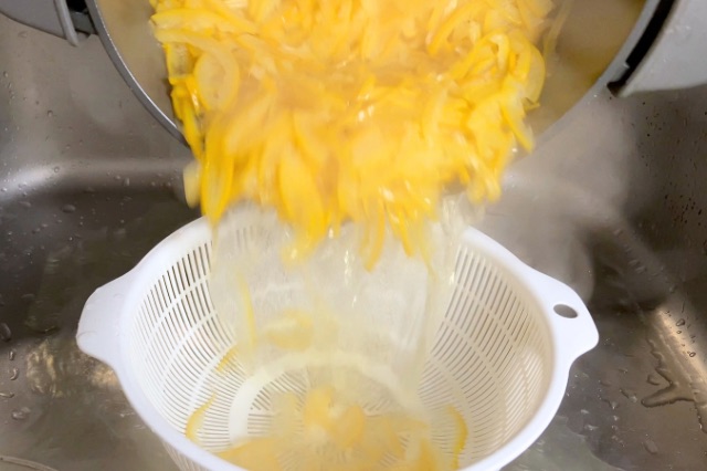 皮を3回茹でこぼすことで、苦味がほとんど気にならない爽やかな仕上がりになります。