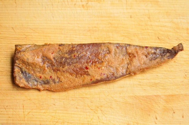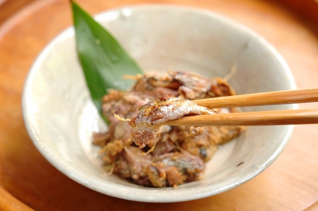 口溶けの後に、へしこの味とぬかの味が広がり、骨が口に残ります。