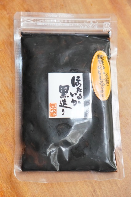 ホタルイカの黒作りは、富山湾で獲れたホタルイカをイカスミと一緒に漬けた塩辛です。