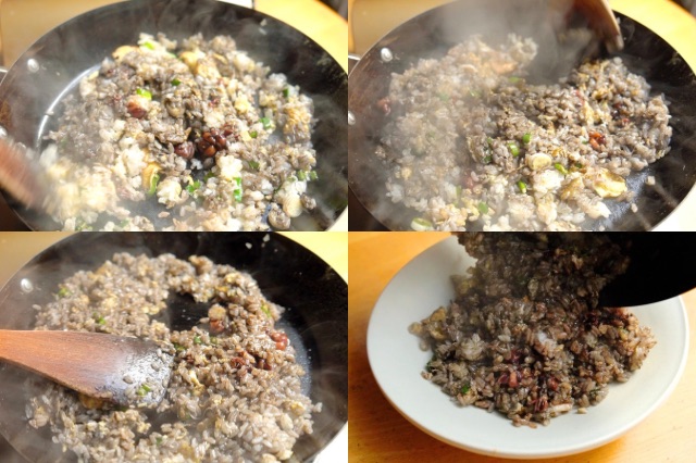 イカスミ炒飯は、イカスミの色でこの赤茶色がわからなくなってますが、同じように全体に広がってます。