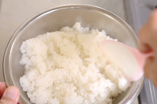 その間にご飯に寿司酢を混ぜてシャリを作っておきます。