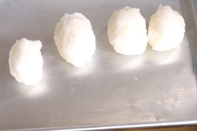 炊いたご飯1合半くらいに塩を2gくらい混ぜ、塩ご飯を作っておきます