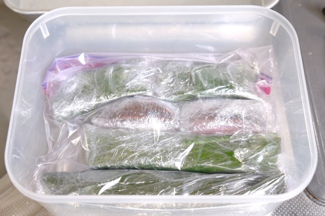 どういう事かというと、葉っぱに付いてる乳酸菌がご飯と魚を乳酸発酵させて、なれずしとして酸味が出る事を期待してるという事です。