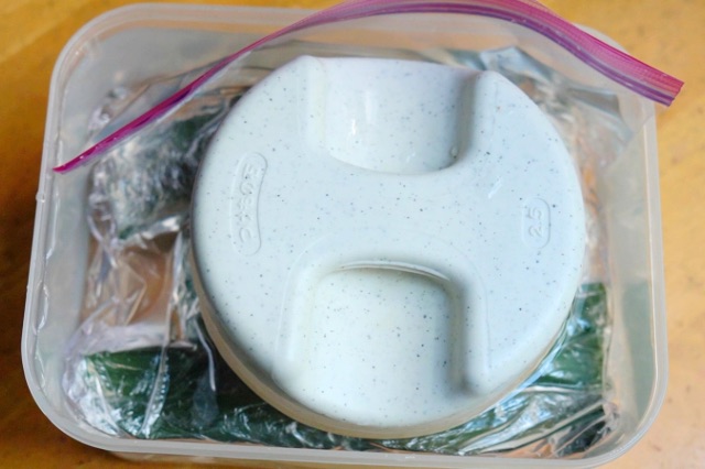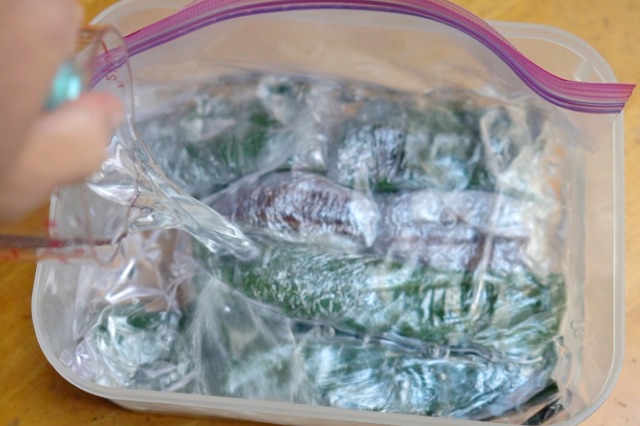 なるべく袋の中に空気が残らないように、袋を押さえて空気を押し出しました。