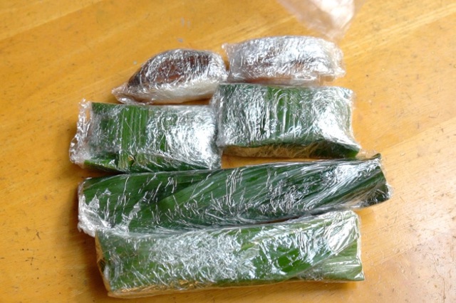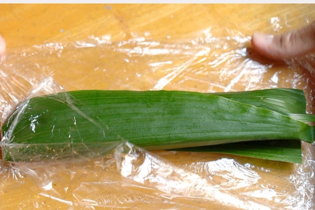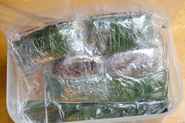 葉蘭で巻かずにラップで包んだものを2個作りました。