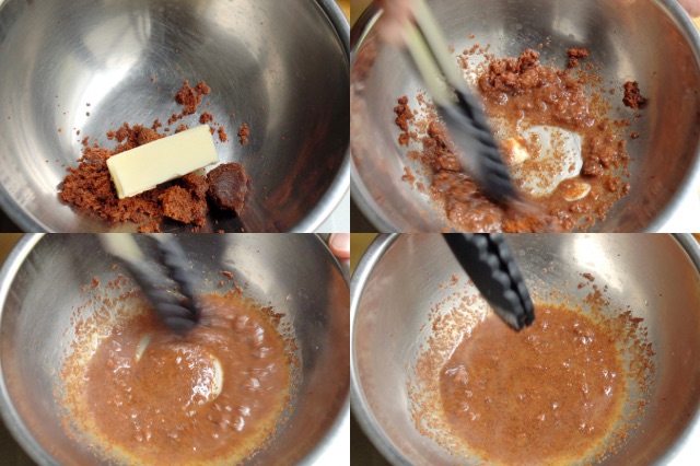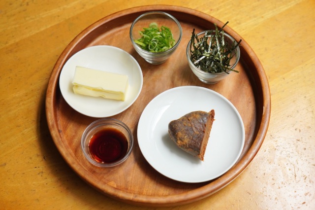 4.ボウルにほぐしたふぐの子とバターと醤油を入れ、軽く火にかけてバターを溶かしソースを作る。