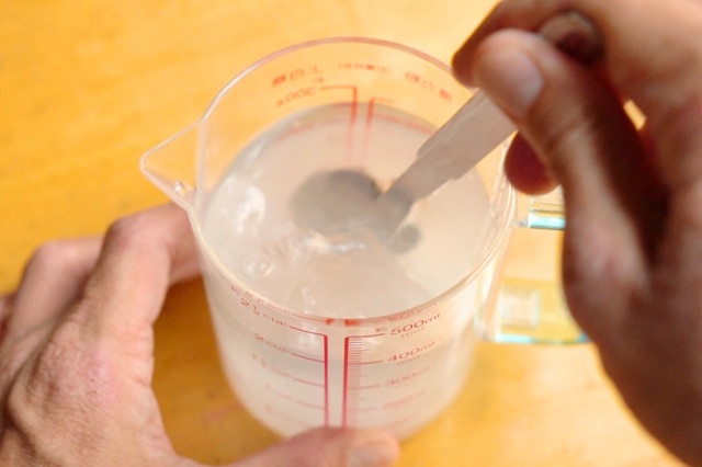 かん水というのは、炭酸カリウムや、炭酸ナトリウムなどの化学物質を溶かしたアルカリ性の水です。