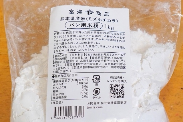 ミズホチカラなどのパン専用米粉は、普通のスーパーには売ってませんので、わざわざ富沢商店まで買いに行くか、通販を利用するのもいいですね。