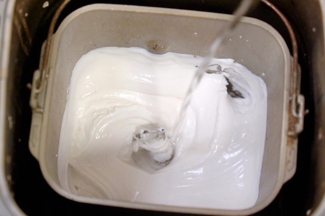きっちり分量を計って入れても、毎回微妙に変わりますから、ちゃんとこねてる時に、蓋を開けて、水分が足りてるか確認するといいです。