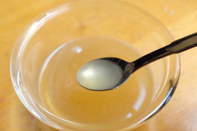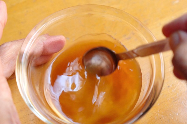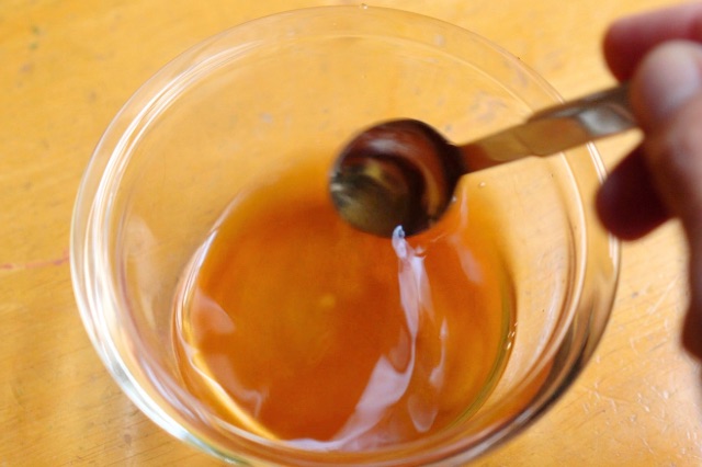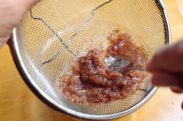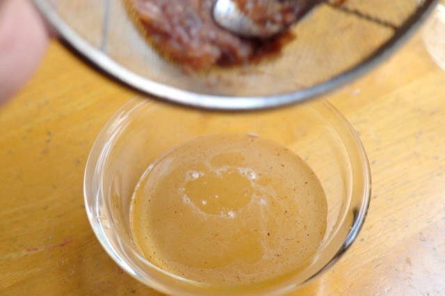 最初は細かい茶漉しで漉そうとしましたが、茶漉しの目が細かすぎて落ちていきませんでした。